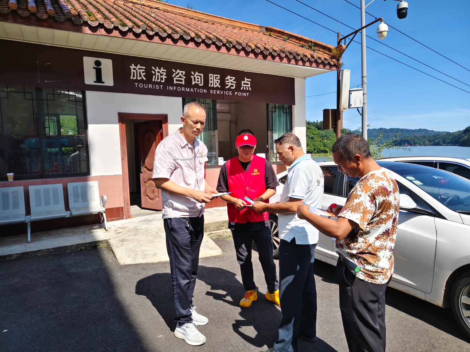 活動現(xiàn)場,志愿者耐心地為游客提供景區(qū)景點、游覽路線、交通信息等咨詢服務(wù),幫助游客規(guī)劃合理的游覽行程,確保游客能夠順利、愉快地游覽景區(qū)。在景區(qū)停車場區(qū)域,協(xié)助景區(qū)工作人員維持交通秩序,引導(dǎo)游客有序停車,保障了停車場的暢通和游客的安全。黨員志愿者們還積極開展《中華人民共和國反有組織犯罪法》宣傳活動。向他們發(fā)放宣傳手冊,提高游客對有組織犯罪的認(rèn)識和防范意識,引導(dǎo)廣大游客自覺遵守法律法規(guī),共同維護(hù)社會和諧穩(wěn)定。