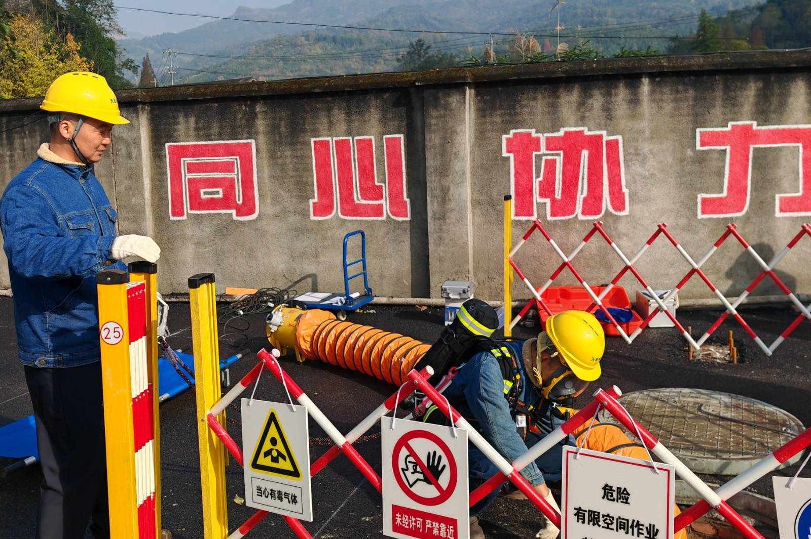 為深入貫徹上級(jí)關(guān)于安全生產(chǎn)工作的決策部署,嚴(yán)格落實(shí)《四川省有限空間作業(yè)安全管理規(guī)定》,全面提升應(yīng)對(duì)有限空間作業(yè)突發(fā)事故的應(yīng)急處置能力,11月20日,天彭電力組織開展了有限空間作業(yè)及中毒窒息事故專項(xiàng)應(yīng)急演練。